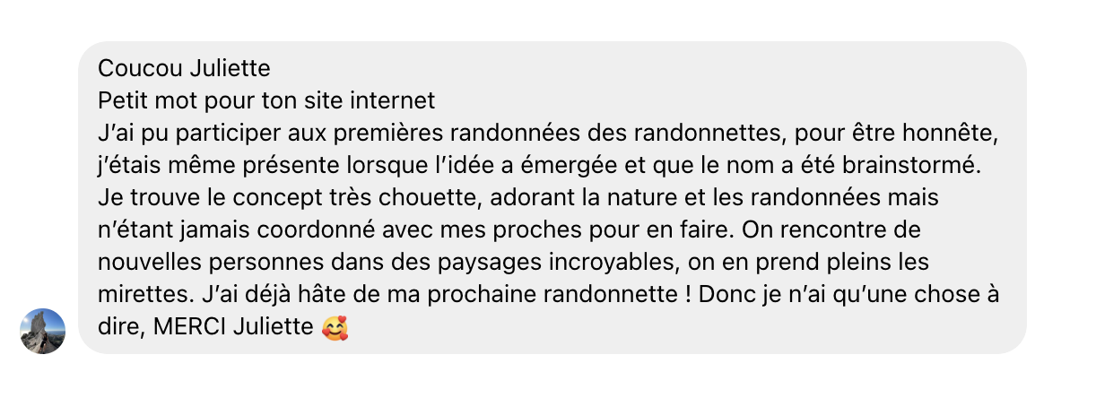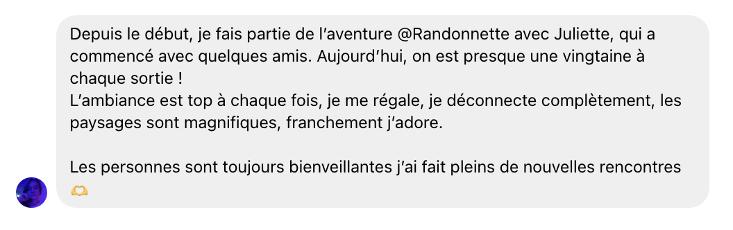 J’espère vous voir tous pour vous emmener avec moi, toujours gratuitement, en balade avec Randonnettes !